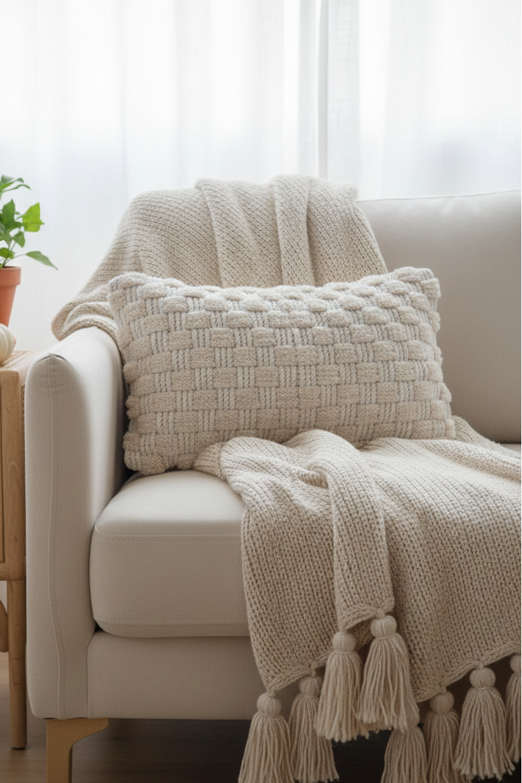 A luxurious blend of timeless artistry and contemporary elegance. Meticulously handcrafted by skilled artisans, each piece is a unique masterpiece that adds bespoke charm to your living space. The intricately woven knots, soft natural hues, and plush, ethically sourced fibers create a sumptuous texture that complements any interior. Elevate your home with this exquisite accessory, where sophistication meets versatility. Welcome the epitome of luxury into your space with our Macramé Cushion Cover – a statement of discerning taste and refined aesthetics.