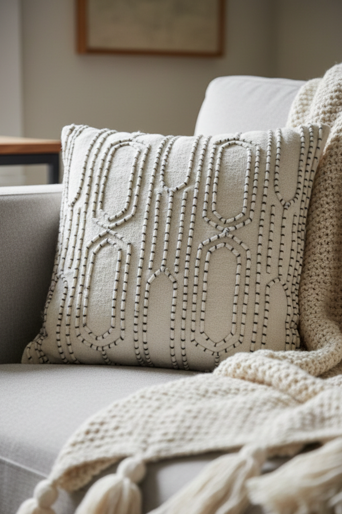 Story of the product: A skilled artisan meticulously crafts a cushion cover with love and passion. With nimble fingers, she delicately sews intricate chikan embroidery onto the finest cotton fabric, infusing it with grace and beauty. Each stitch tells a story of tradition and craftsmanship, creating an exquisite masterpiece that breathes life into any room it graces.