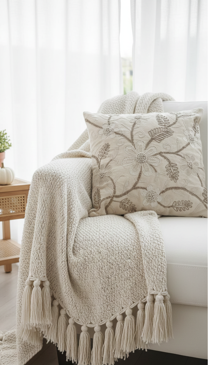 Craftmanship of the Product:- This summer, Aadyahome artisans have flourished in their craftsmanship, focusing on the beauty of neutrals like white, cream, and off-white. They've skillfully utilized various shades of natural cotton to accentuate intricate detailing and craftsmanship, incorporating subtle colour variations that bring out nuanced designs. The new range launch showcases entirely handmade pieces by Aadyahome artisans, adding a sophisticated touch to neutral tones with their meticulously crafted designs.