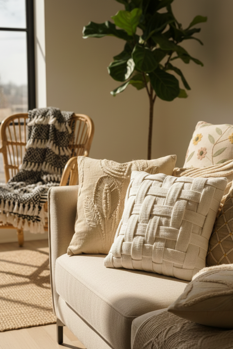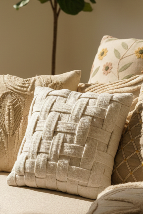 The Ivory Interlace Cushion celebrates quiet sophistication through its elegant lattice weave. Crafted in soft neutral cotton, it brings architectural precision to cozy spaces. The rhythmic crisscross structure gives it a sculpted yet approachable charm — making it the perfect accent piece for modern, minimal, or earthy interiors. Its visual depth invites touch, adding warmth and structure without overwhelming the setting.
