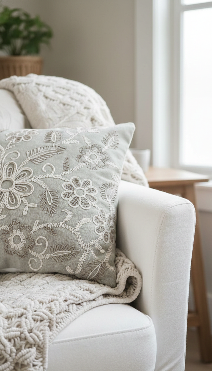 Care of Product: Cherish the Opulent Embroidered Tapestry Pillow with care. Given its handmade nature, a gentle approach is recommended. Spot cleaning ensures the preservation of the diverse hand embroidery techniques, allowing this pillow to remain a testament to the artistry and passion woven into every fibre.