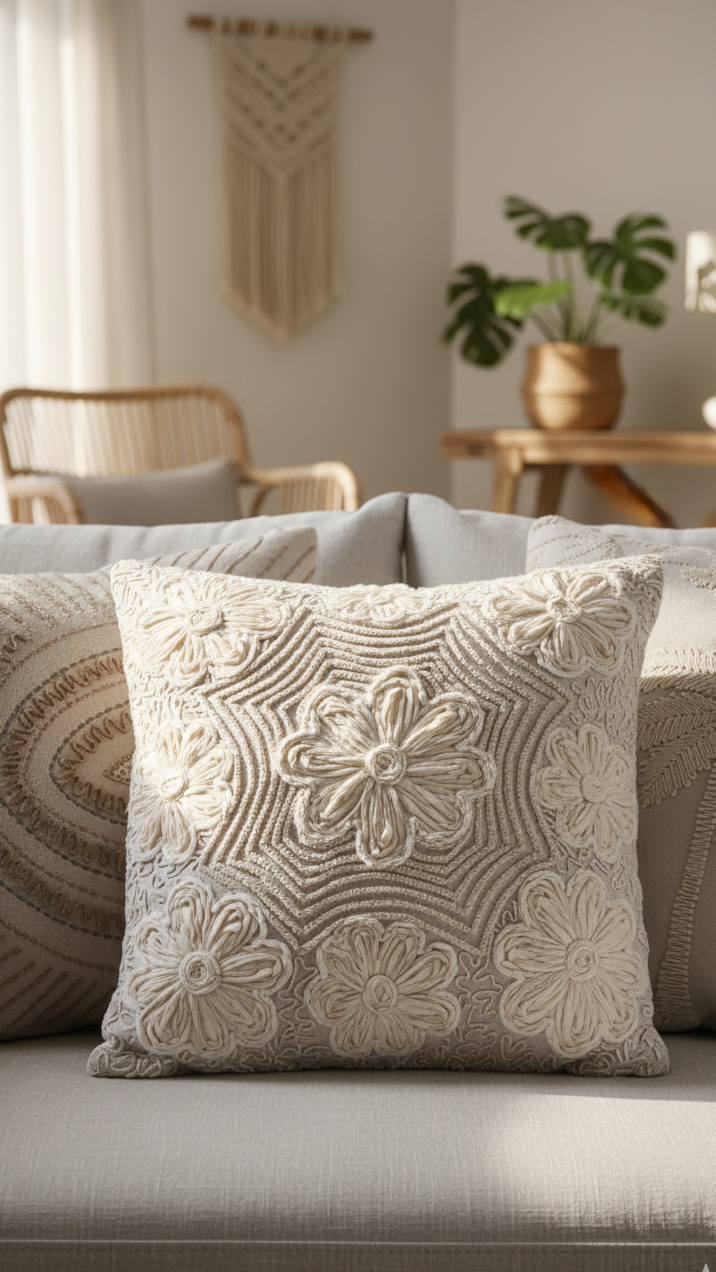 Care of Product: Cherish the Opulent Embroidered Tapestry Pillow with care. Given its handmade nature, a gentle approach is recommended. Spot cleaning ensures the preservation of the diverse hand embroidery techniques, allowing this pillow to remain a testament to the artistry and passion woven into every fibre.